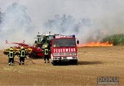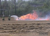 Nachdem die brennenden Heuballen durch die Traktoren zerteilt worden waren, konnten auch diese vollständig abgelöscht werden.