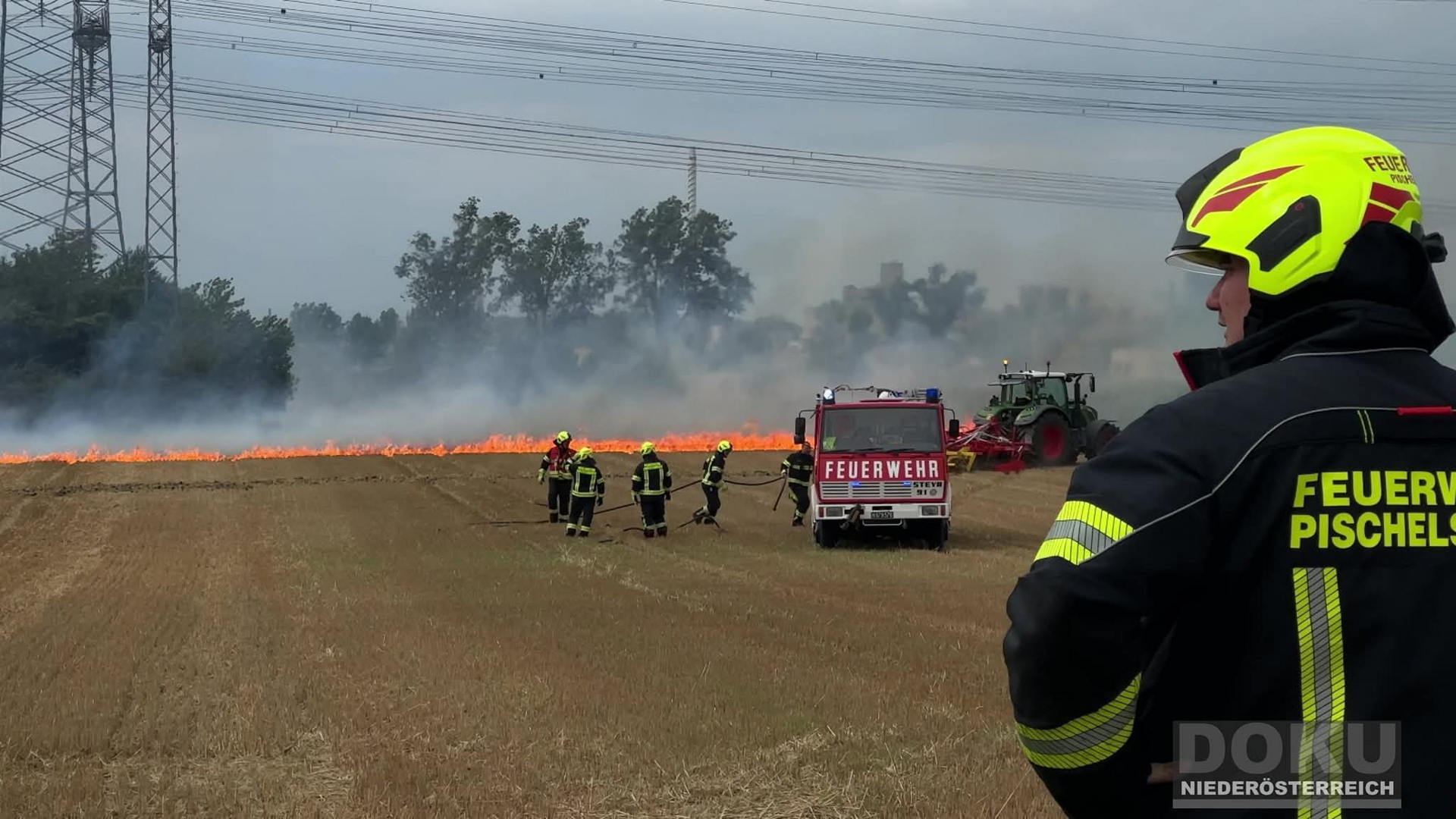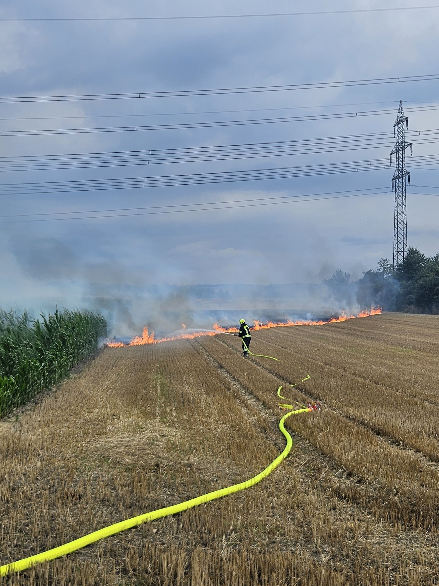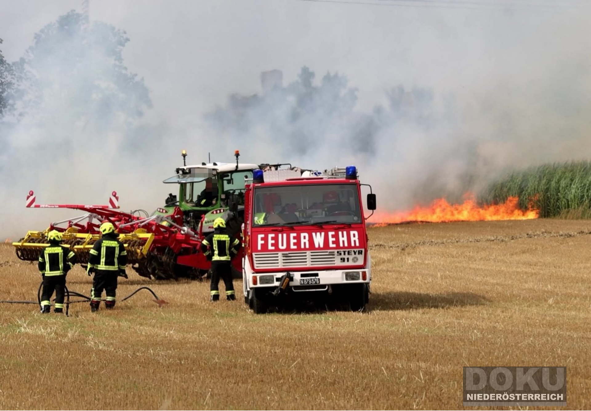 Am Montagnachmittag, dem 21.07.2025 wurde die Feuerwehr Zwentendorf gemeinsam mit drei weiteren Feuerwehren zu einem Flurbrand in Pischelsdorf alarmiert. Bereits beim Eintreffen standen rund 2 Hektar Stoppelfeld sowie drei Heuballen in Vollbrand.