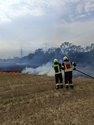 Aufgrund einer aufziehenden Wetterfront mit starkem Wind breitete sich das Feuer rasant aus. Binnen kurzer Zeit waren bereits 3 Hektar Fläche sowie fünf Heuballen betroffen. Die Wasserversorgung in diesem Gebiet gestaltete sich äußerst schwierig und musste über lange Strecken aufgebaut werden.