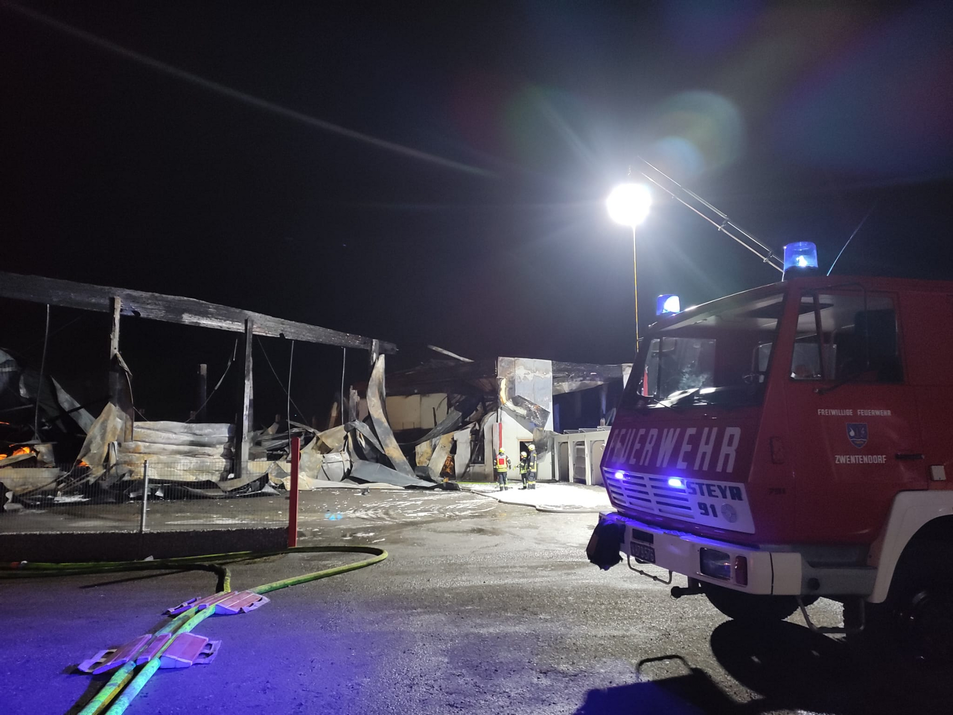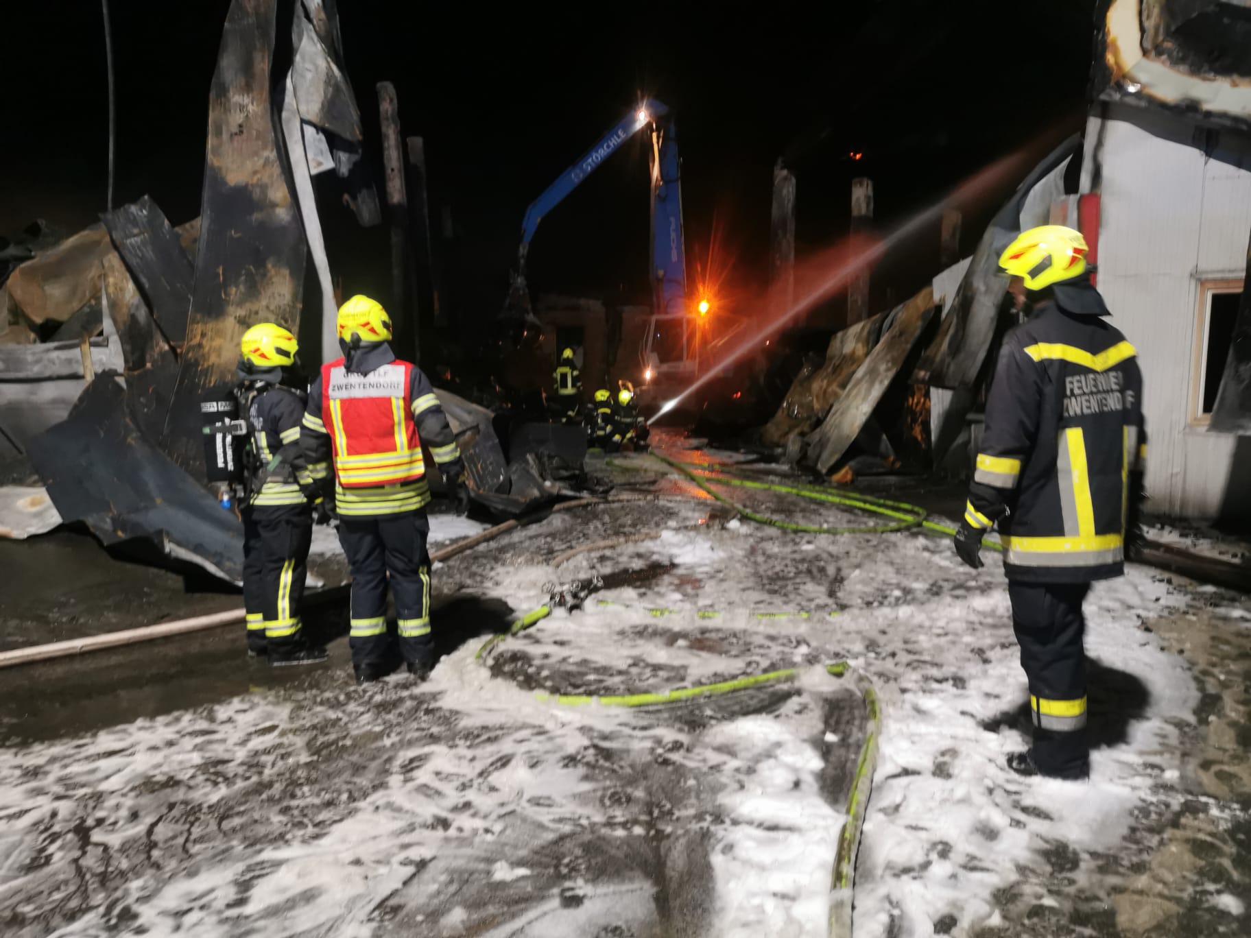 Die FF-Zwentendorf wurde in der Nacht auf Samstag, um 02:33 Uhr, ebenfalls zur Ablöse der eingesätzten Kräfte mit dem Tanklöschfahrzeug und Atemschutzgeräterägern nach Michelhausen alarmiert. Am Einsatzort wurden bis 07:00 Uhr teils unter Atemschutz weitere Nachlöscharbeiten durchgeführt, bis schlussendlich auch die Mannschaft der FF-Zwentendorf durch weitere Feuerwehren abgelöst werden konnte.