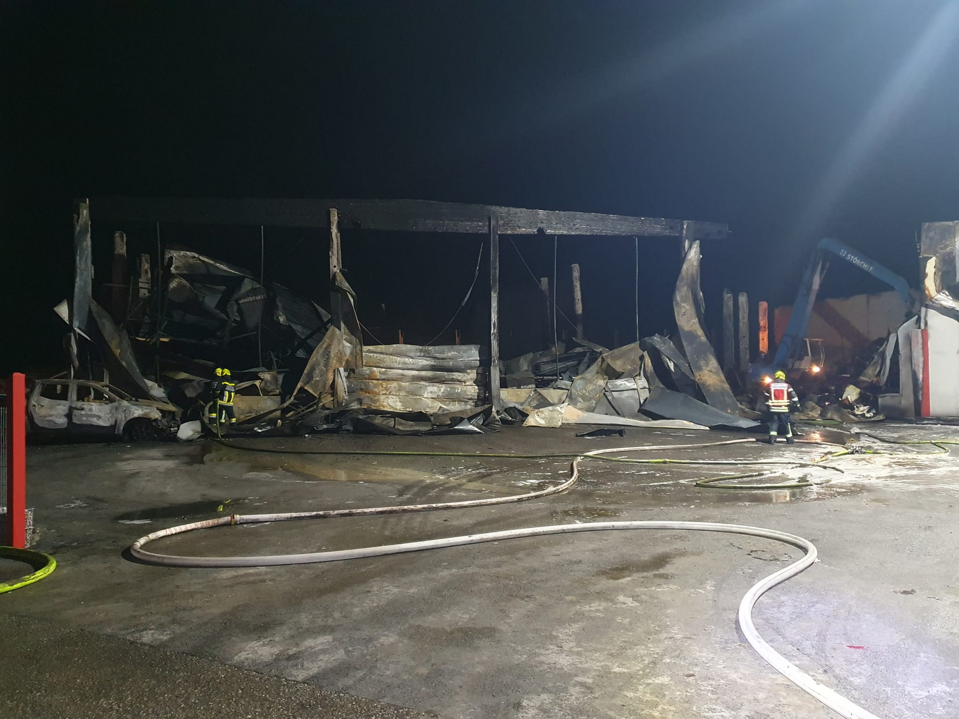 Innerhalb kürzester Zeit wurde ein Großalarm für sämtliche Einsatzorganisationen ausgelöst. Bis in die Abendstunden waren die Feuerwehren vor Ort damit beschäftigt, die in Brand geratenen Lagerhallen abzulöschen.