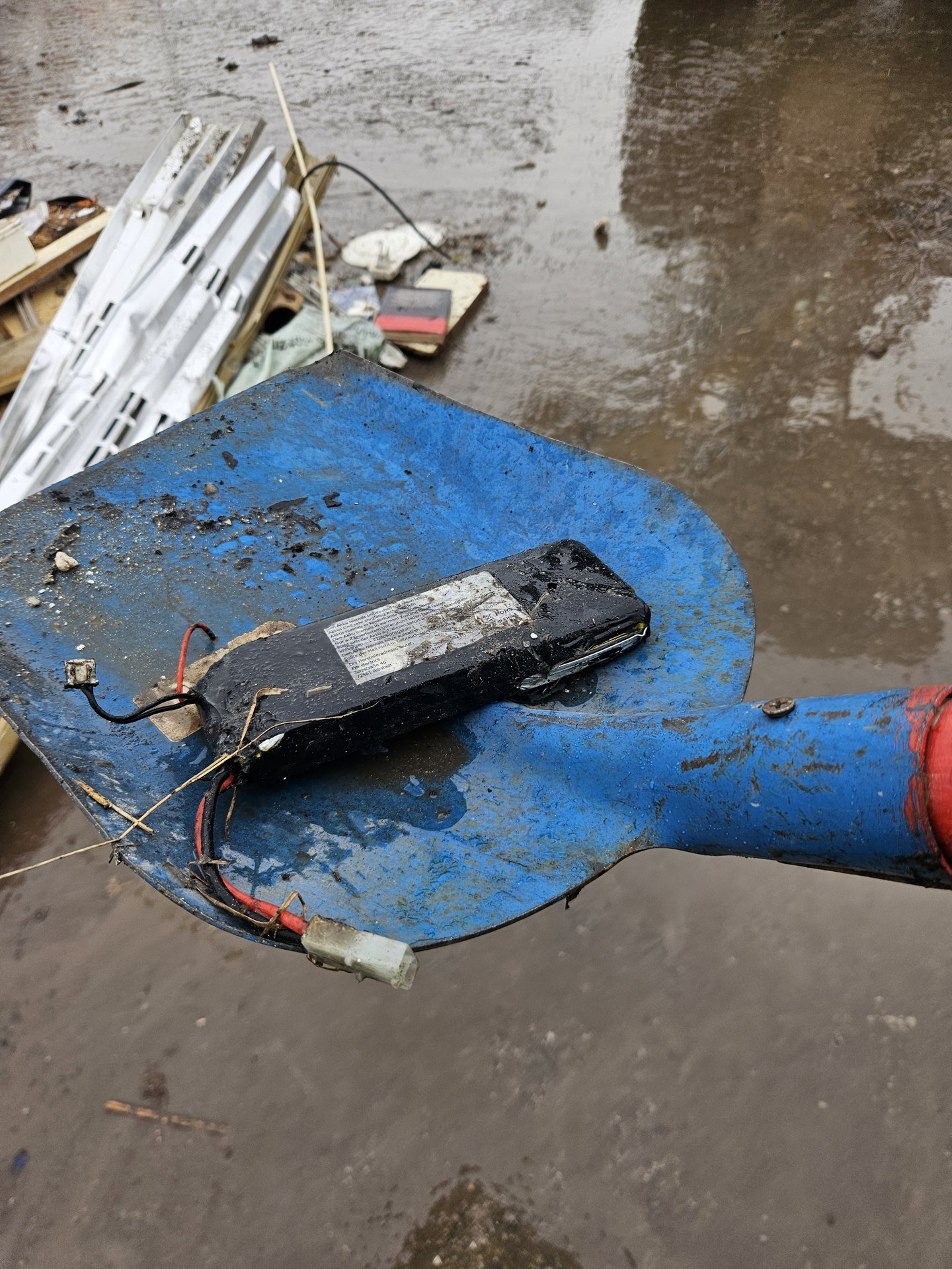 Die Vermutung, dass der Brand durch einen dort falsch entsorgten Akku ausbrach, konnte bei der Erkundung schnell bestätigt werden. Nachdem der Sperrmüllhaufen zuvor bereits durch das anwesende Personal mittels Radlader verteilt wurde, konnte der Brand durch die Feuerwehr schnell abgelöscht werden. Der beschädigte Akku wurde zur Kühlung und zur weiteren sicheren Lagerung in ein mit Wasser gefülltes Blechfass gelegt.
