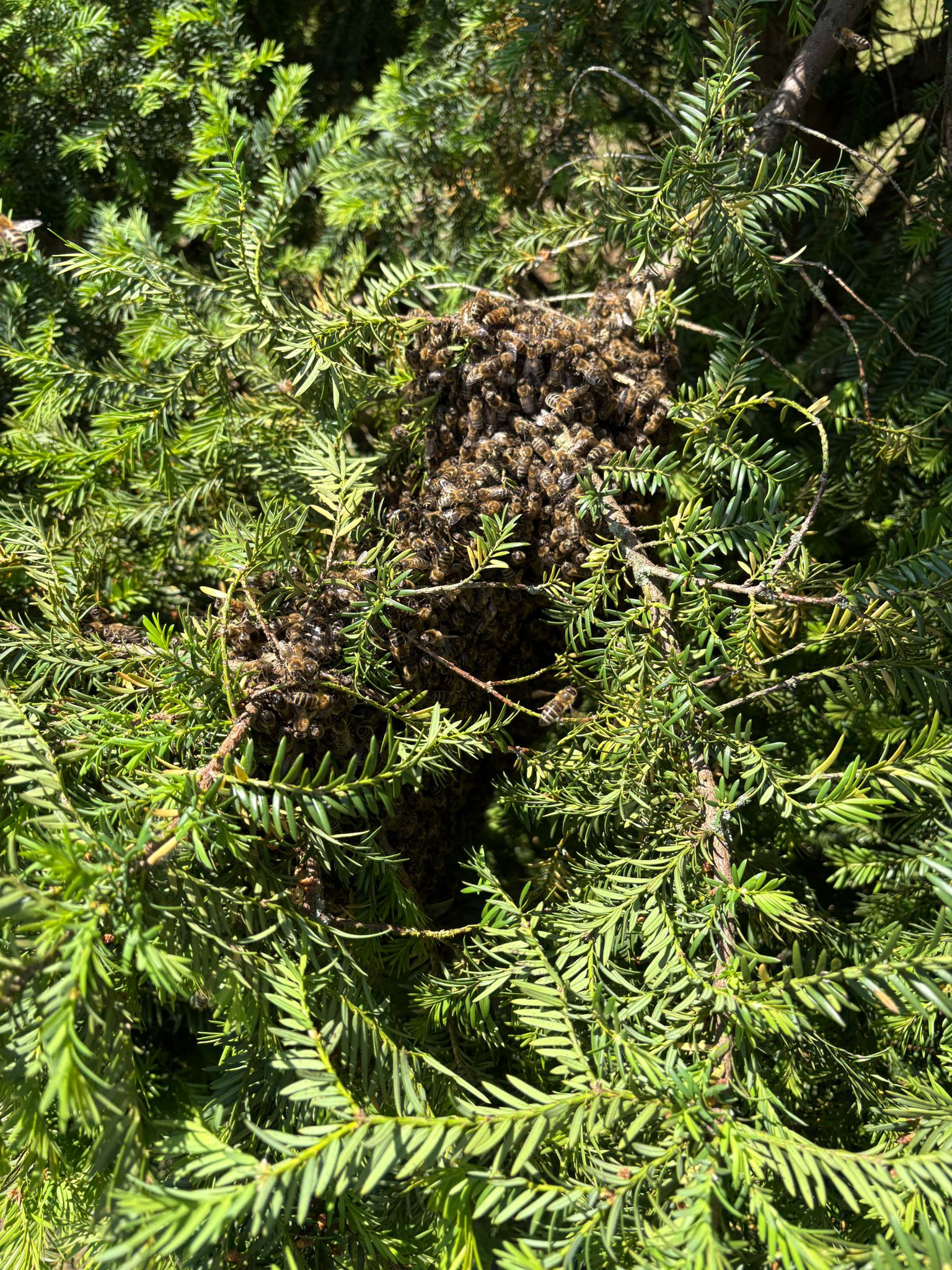 Etwa eine Stunde später hatte der Bienenschwarm den Bereich bereits von selbst wieder verlassen.