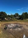 Die Einsatzkräfte begannen umgehend mit den Löscharbeiten. Mithilfe von Schanzwerkzeug wurde das Brandmaterial verteilt und gründlich abgelöscht, um auch die letzten Glutnester zu beseitigen.