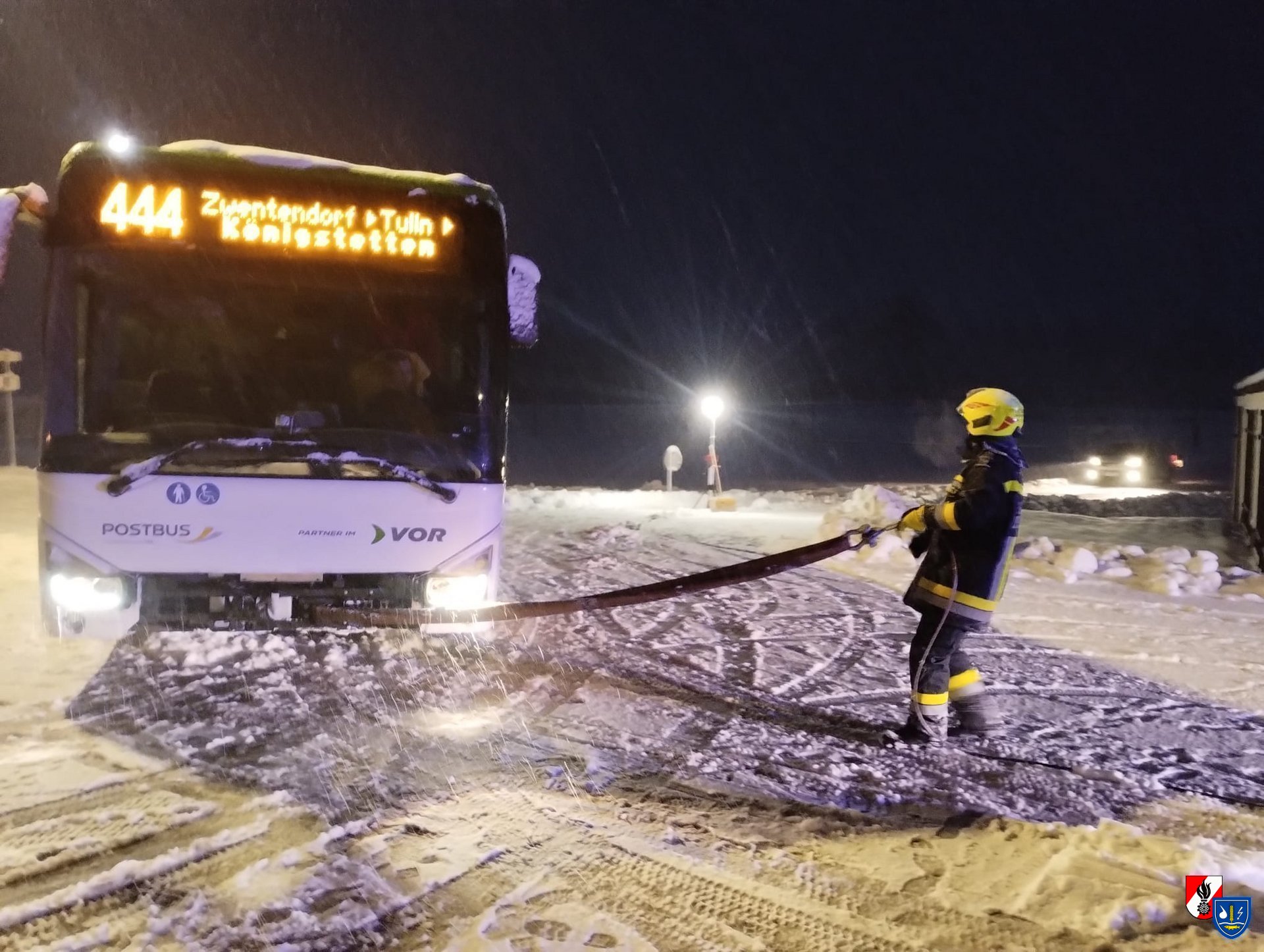 Kurz vor 05:00 Uhr wurde die Freiwillige Feuerwehr Zwentendorf zu einem Einsatz der Kategorie T1 – Bergung Großfahrzeug (3-achsiger Bus) alarmiert.