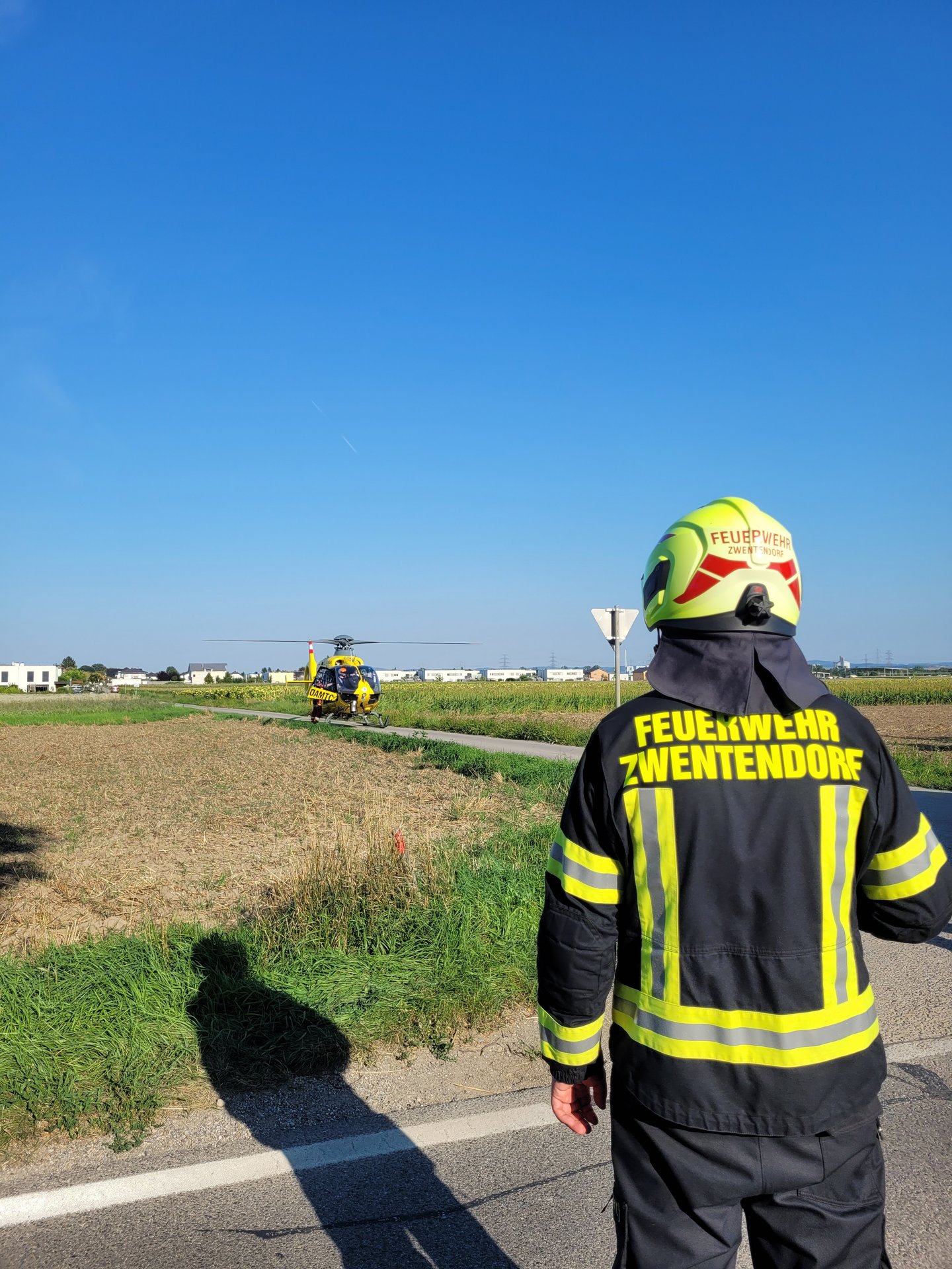 Während der Brandsicherheitswache beim Shutdown-Festival kam es am Samstagnachmittag, dem 08. August 2025, zu einem Verkehrsunfall auf der Umfahrungsstraße Zwentendorf (L112).