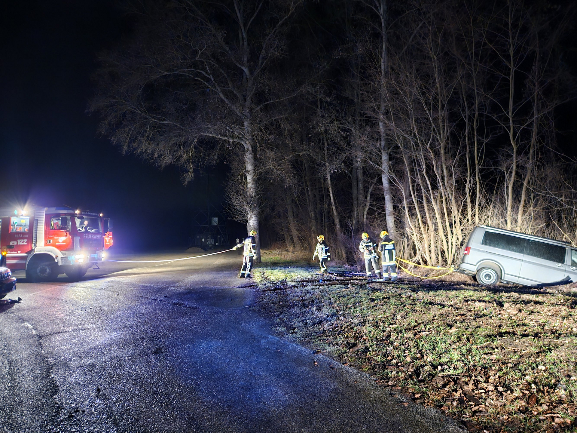 Vor Ort wurde für die Aufnahme der Polizei die Unfallstelle ausgeleuchtet und das Fahrzeug gesichert.
