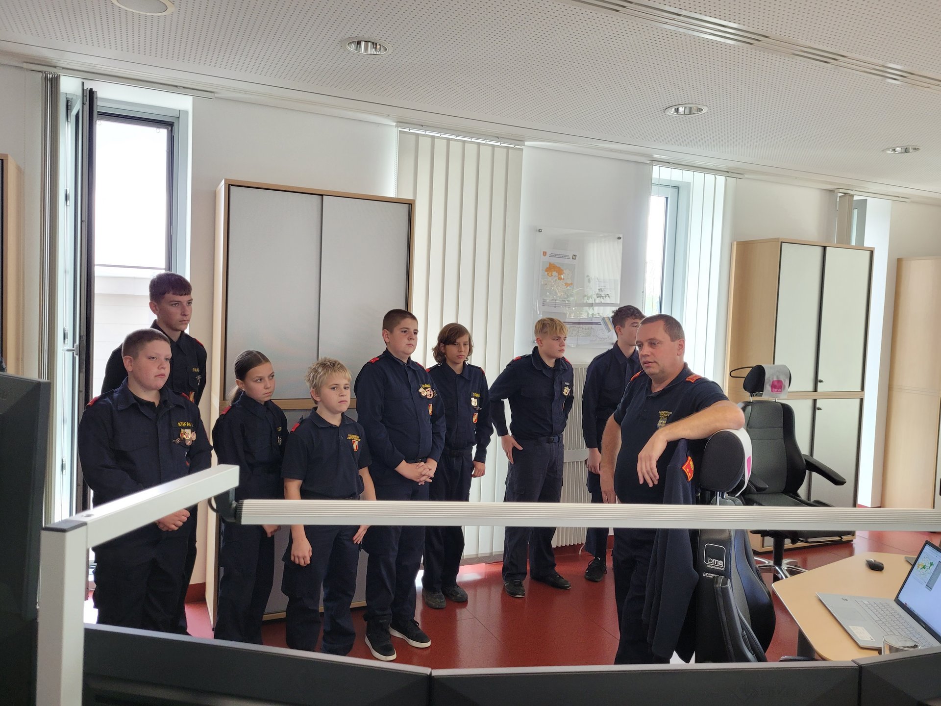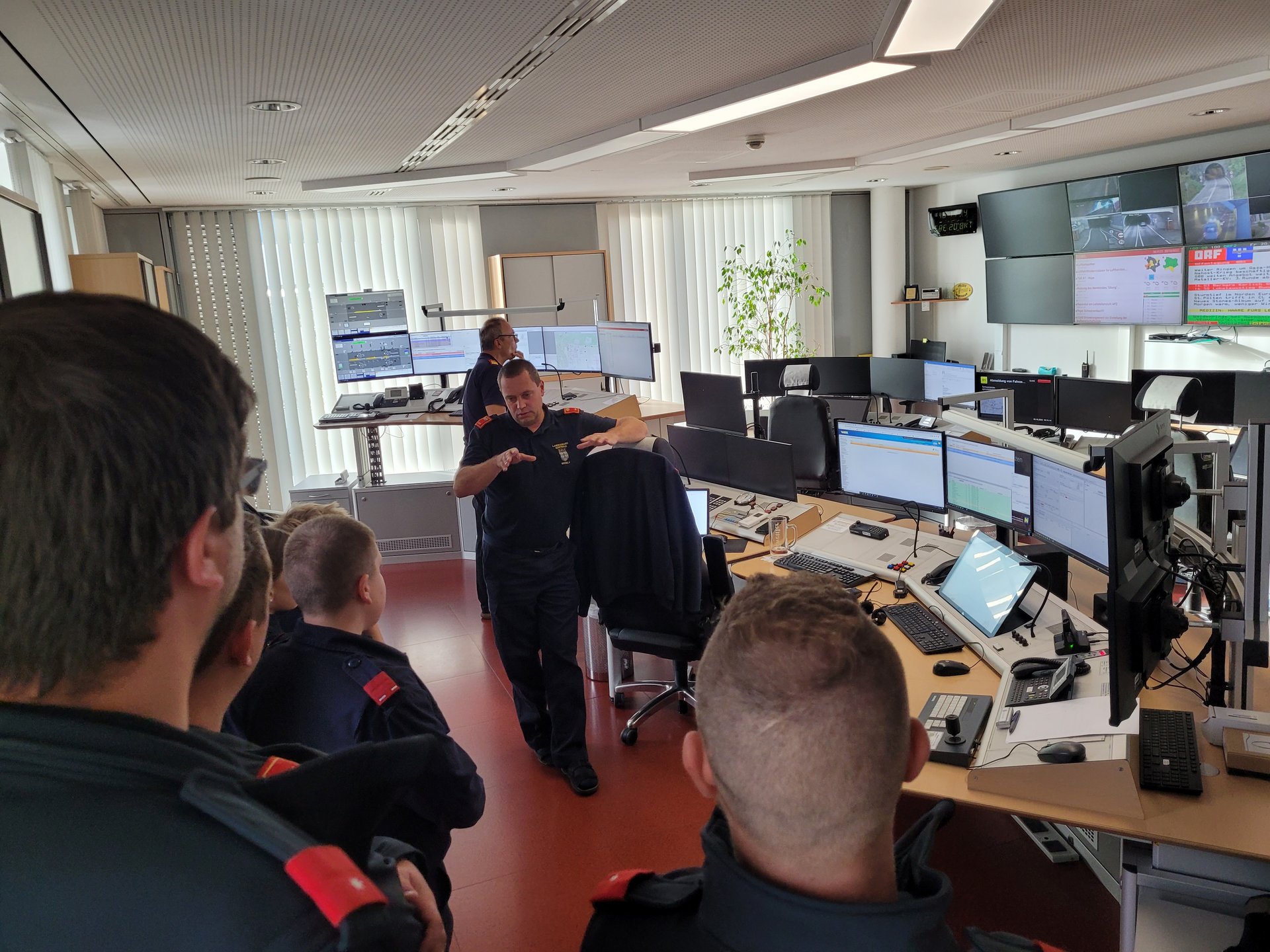 Während des Besuchs ist auch ein echter Notruf eingegangen. Anhand dessen konnte der Ablauf vom Eingang des Notrufs, über die Alarmierung der Feuerwehr, bis hin zu deren Ausrückung verfolgt werden.