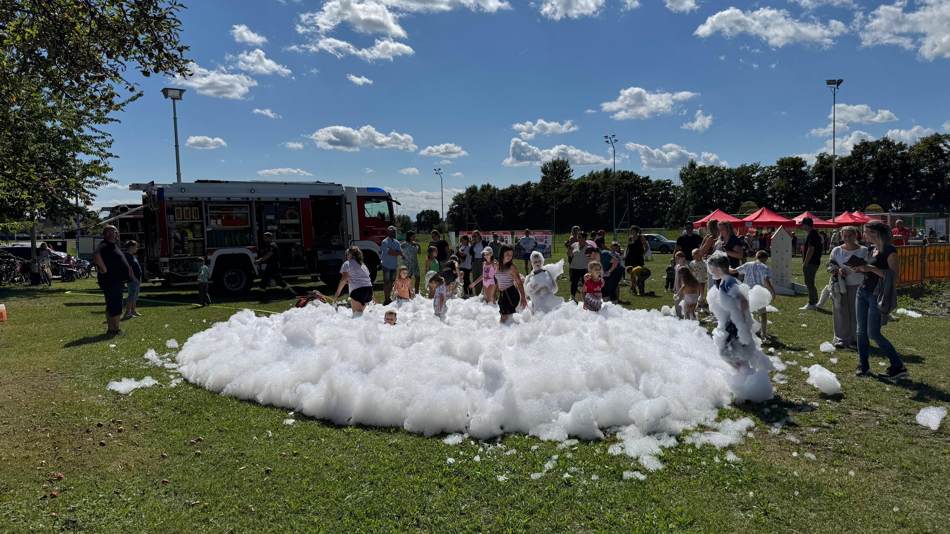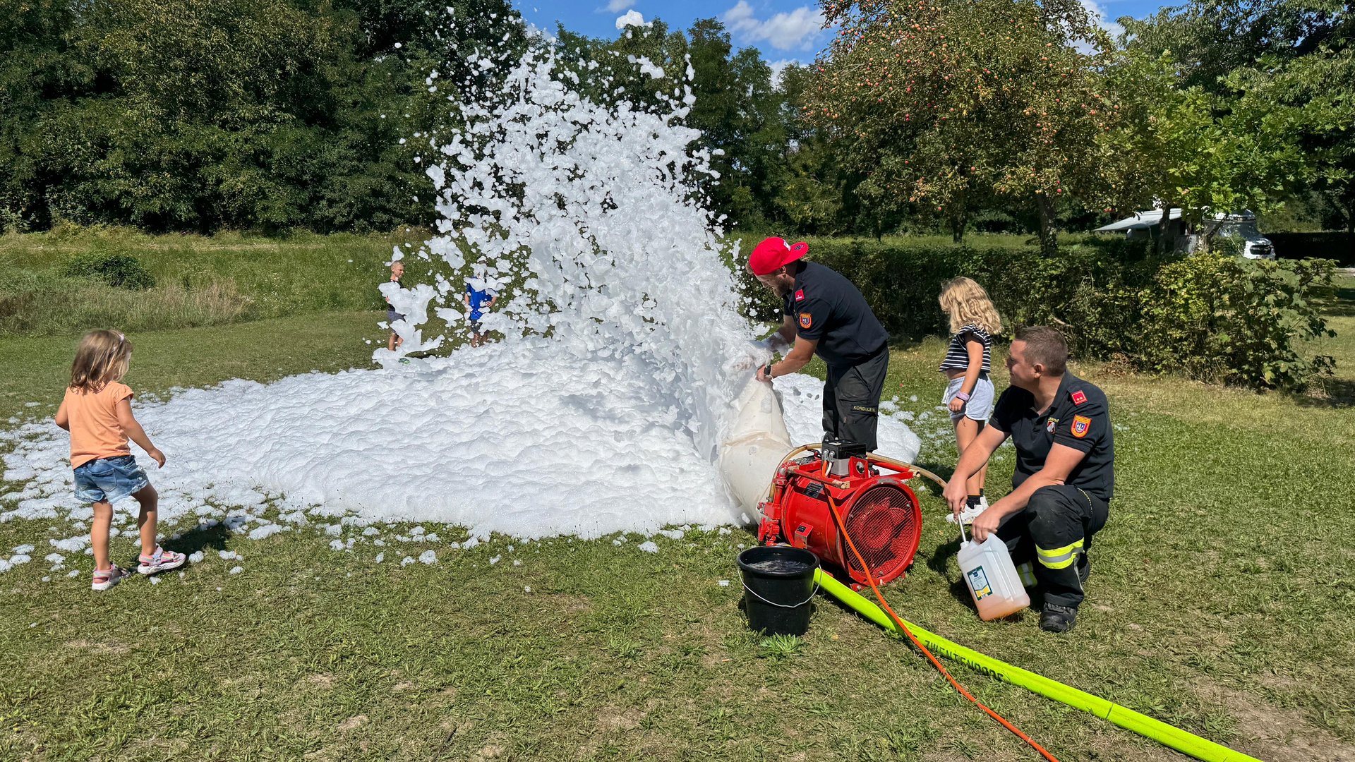 Die Kameraden der Feuerwehr sorgten mit einer Badeschaumparty, Sprühnebel und Kübelspritzen für jede Menge Spaß und eine willkommene Abkühlung bei den anwesenden Gästen. Besonders die Kinder hatten große Freude daran, sich im kühlen Nass zu erfrischen.