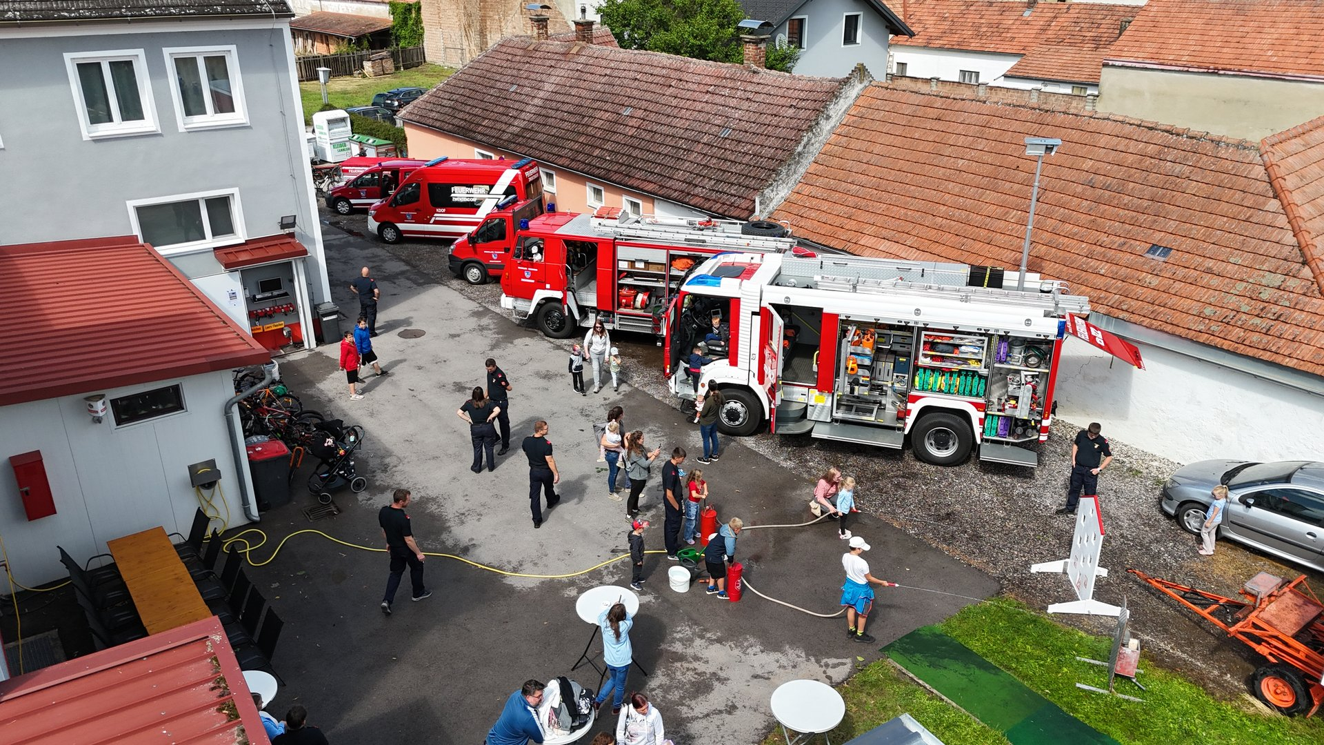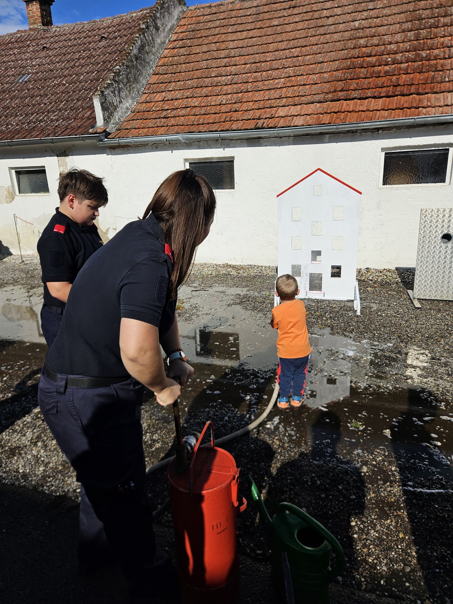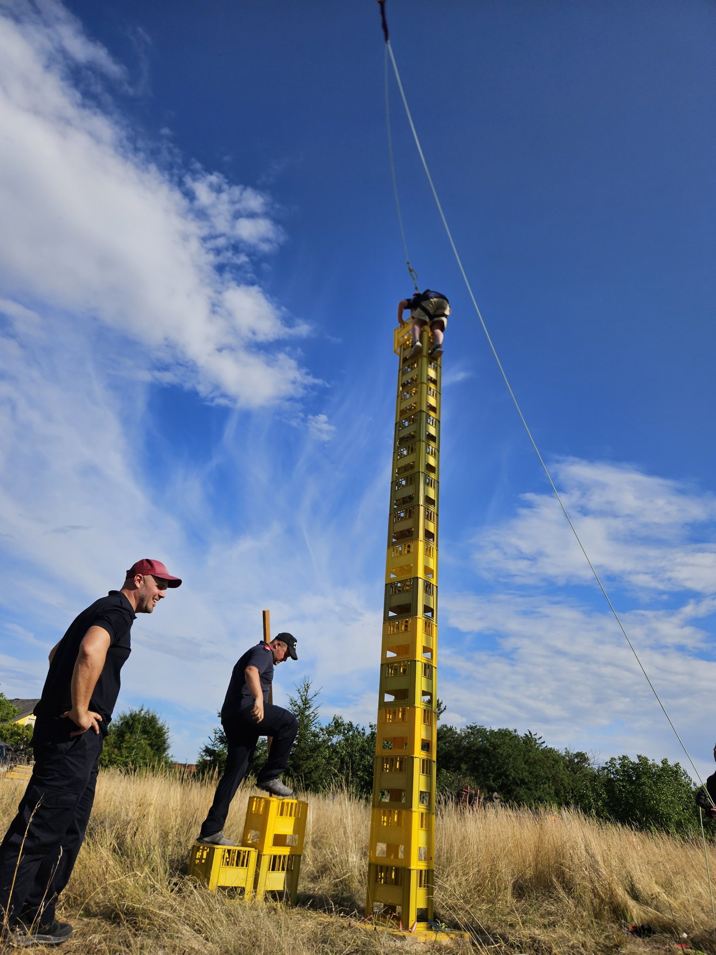Besonders beliebt war das Kistenklettern. Einige mutige Teilnehmende erreichten beeindruckende Höhen. Beim Kübelspritzen war Zielgenauigkeit gefragt, beim Schlauchkegeln kam es auf Geschick an. Auch die Fahrzeuge der Feuerwehr durften aus nächster Nähe erkundet werden. Viele Kinderaugen leuchteten beim Blick in die Einsatzwagen.