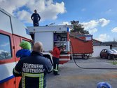 Im Anschluss daran wurden in zwei Gruppen die unterschiedlichen Fahrzeuge durch die Mitglieder der Feuerwehr Zwentendorf erklärt und die Funktionen demonstriert. Als Highlight konnte zum Abschluss der Wasserwerfer des Rüstlöschfahrzeuges im Betrieb begutachtet werden.