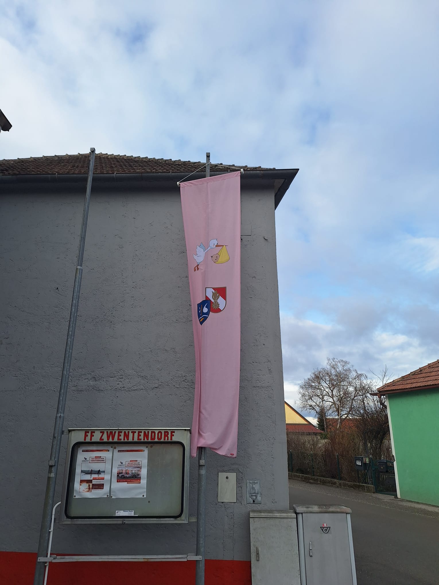 Weiters konnte zur Geburt von Laura das erste Mal unsere neu angeschaffte "Geburtsfahne" beim Feuerwehrhaus aufgezogen werden.
