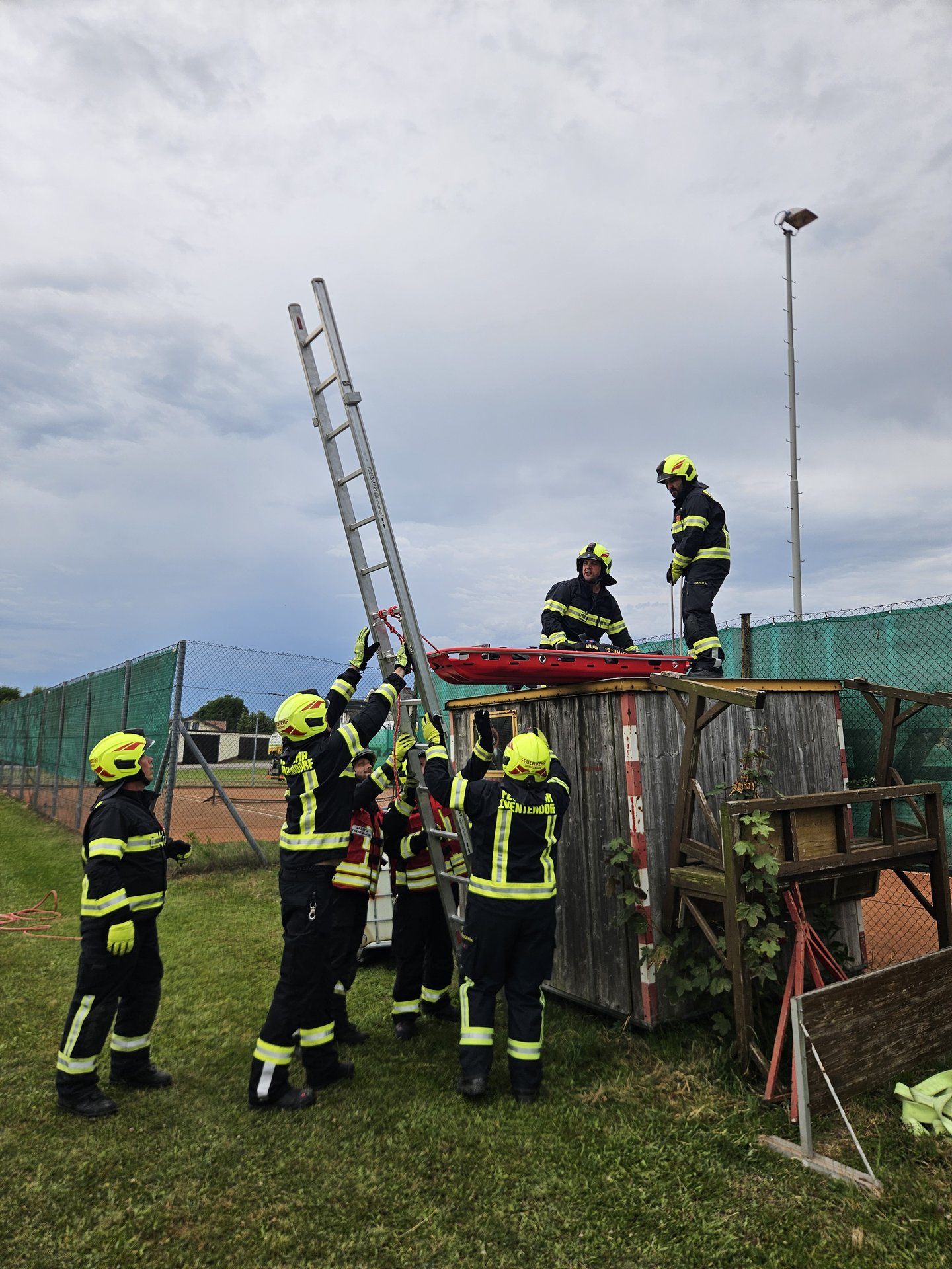 Am Montagabend, dem 23. Juni 2025 wurde durch die Feuerwehr Zwentendorf eine Einsatzübung durchgeführt. Das Übungsszenario stellte einen Unfall zweier Kinder beim Spielen auf einer Hütte dar.