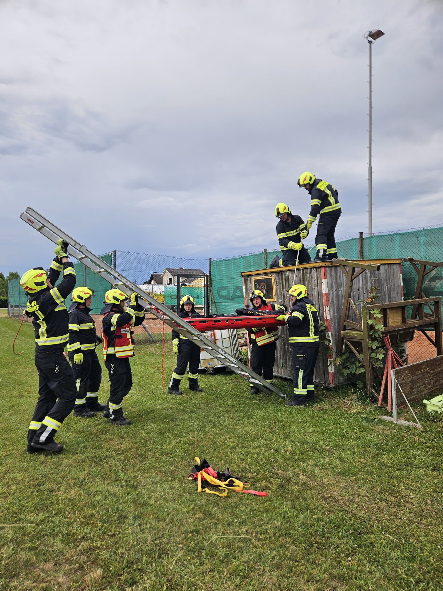 Nach erfolgreichem Abschluss der Übung fand eine kurze Nachbesprechung statt. Dabei wurden die verwendeten Geräte durchbesprochen und alternative Rettungsmöglichkeiten diskutiert.