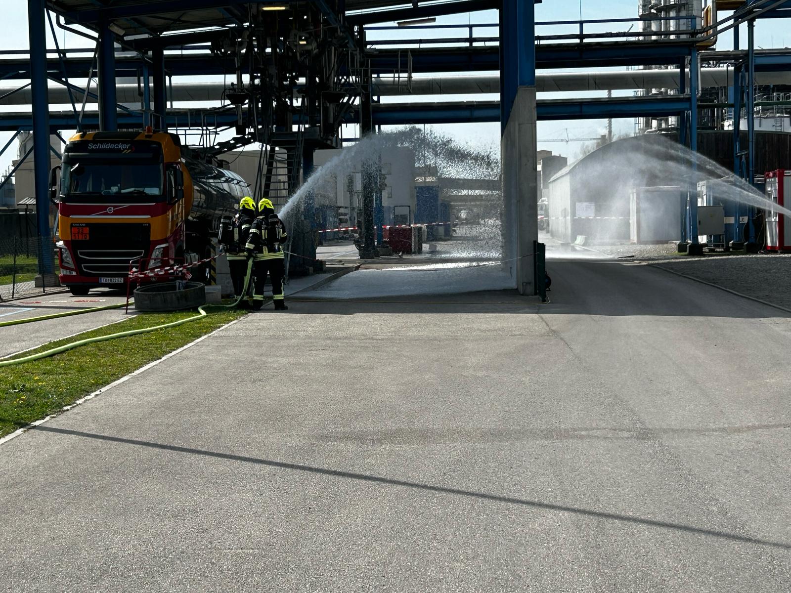 Groß angelegte Inspektionsübung der Feuerwehren im Industriepark Pischelsdorf