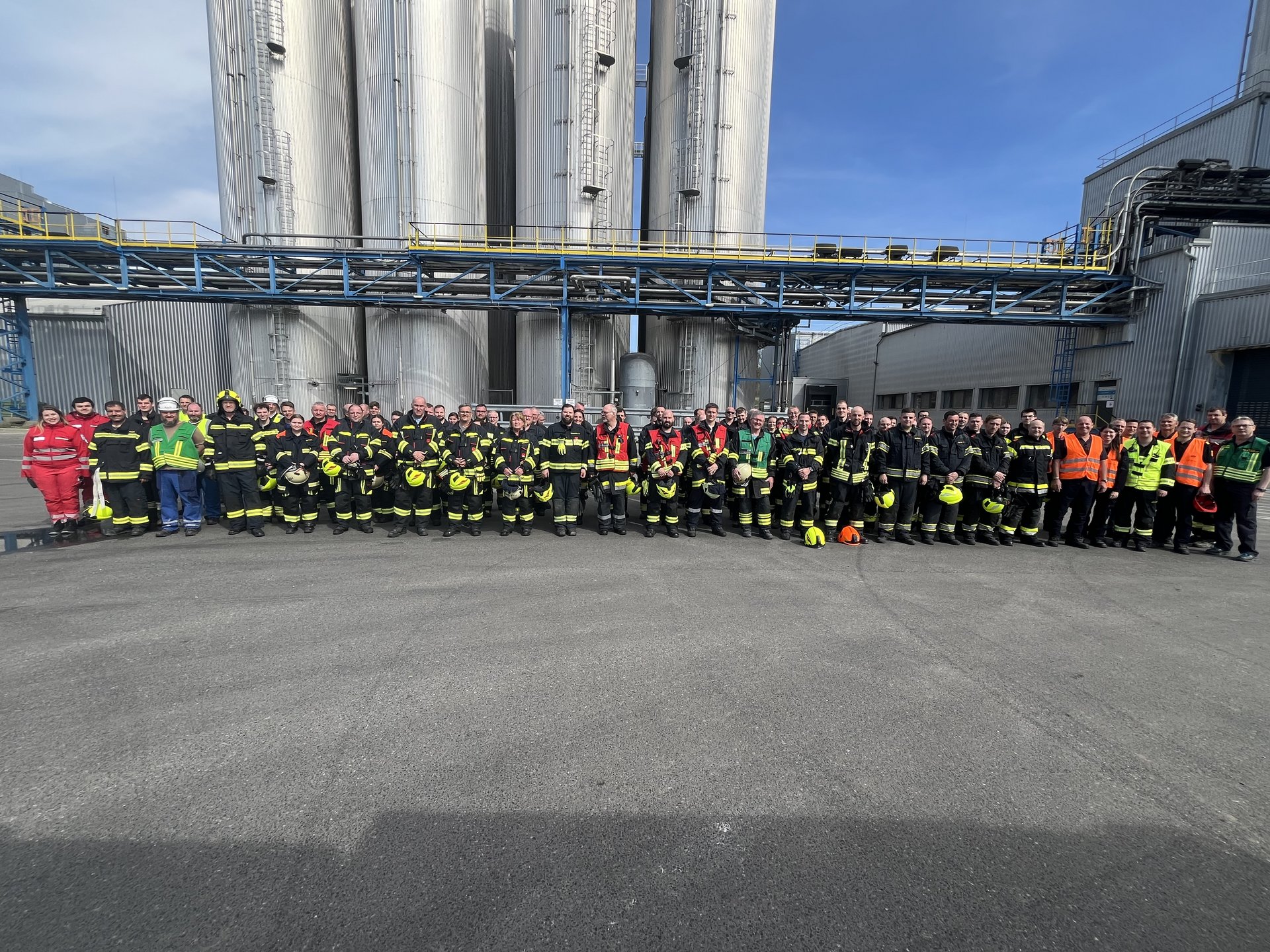 Das Übungsszenario war eine Explosion in der LKW-Ethanolverladung, bei der mehrere Mitarbeiter verletzt wurden. Umgehend wurde die örtliche Betriebsfeuerwehr des Industrieparks zu diesem Einsatz alarmiert. Nach der Lageerkundung durch den Einsatzleiter wurde die Alarmstufe sofort auf B3 erhöht.