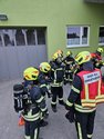 Kurz nachdem wir uns dort bei der Bereichsleitung gemeldet hatten, marschierte auch schon unser zuvor bereits ausgerüsteter Atemschutztrupp zur Menschenrettung ins 1. OG des Bürogebäudes. Parallel dazu unterstützte die restliche Mannschaft beim Transport der geretteten Personen zum SAN-Platz.