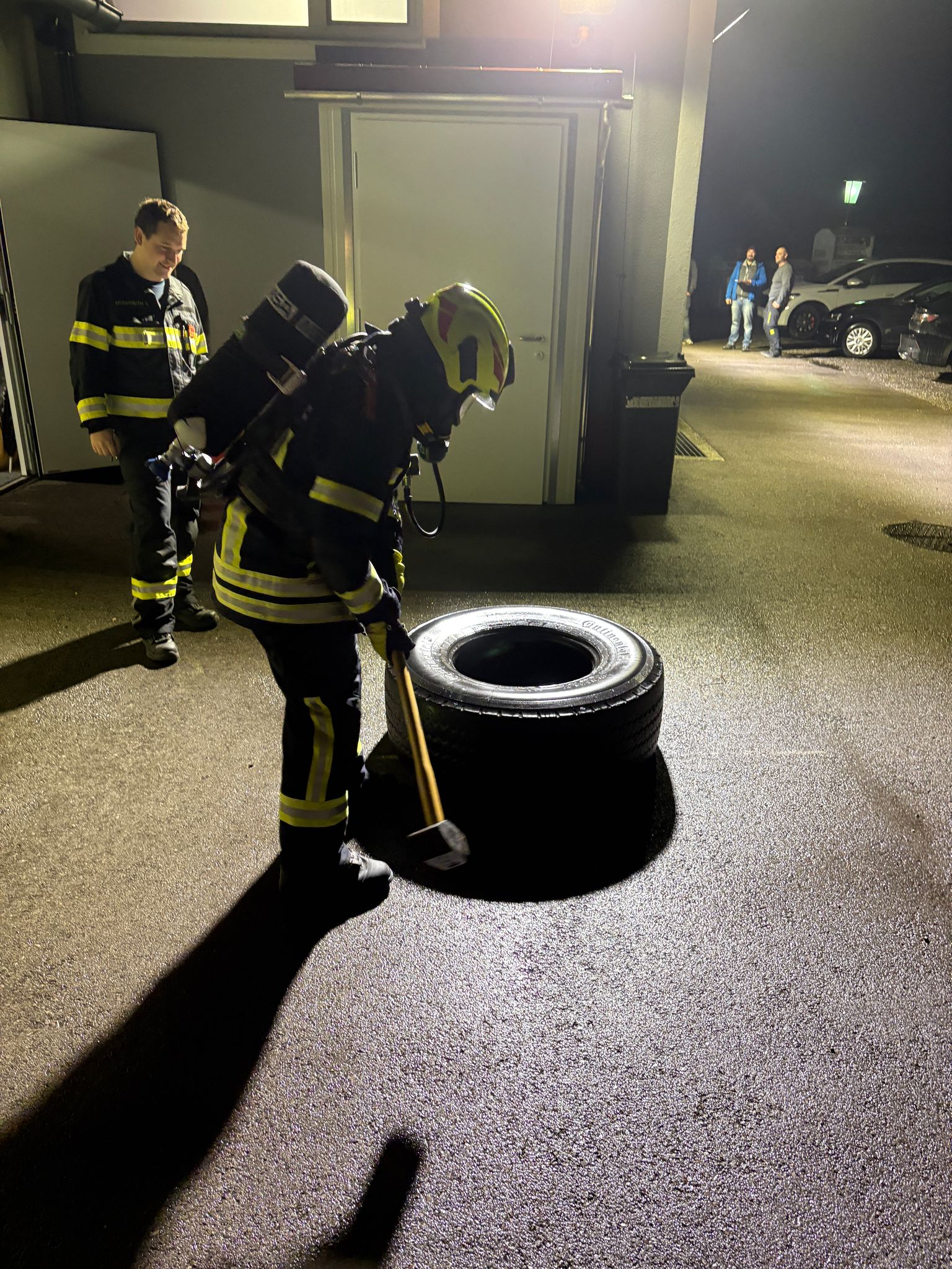 Hierbei mussten die Atemschutzgeräteträger den sogenannten “Fahrrad-Test” oder den “Finnentest”, welcher aus 5 Stationen besteht, absolvieren.