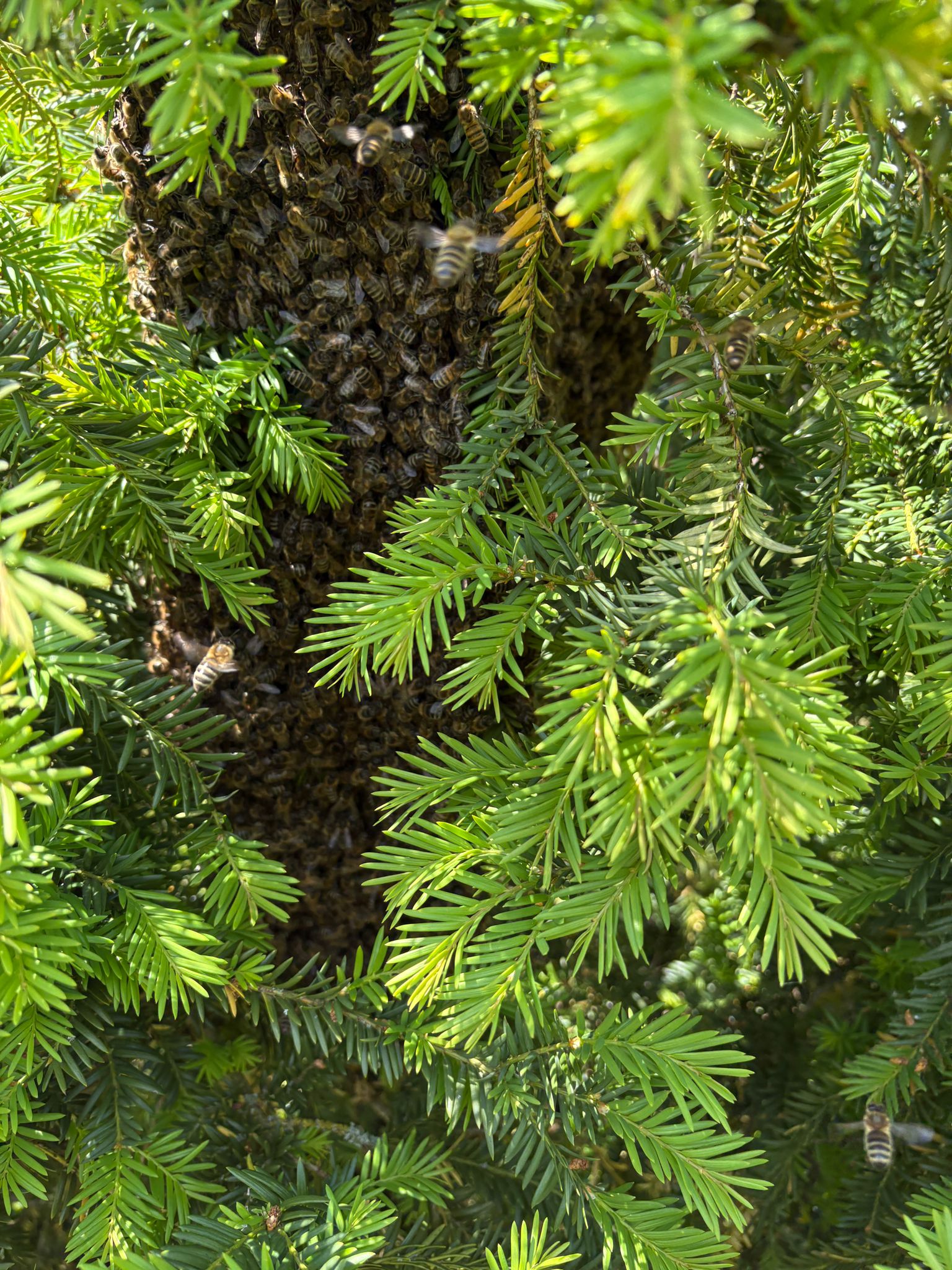 Etwa eine Stunde später hatte der Bienenschwarm den Bereich bereits von selbst wieder verlassen.
