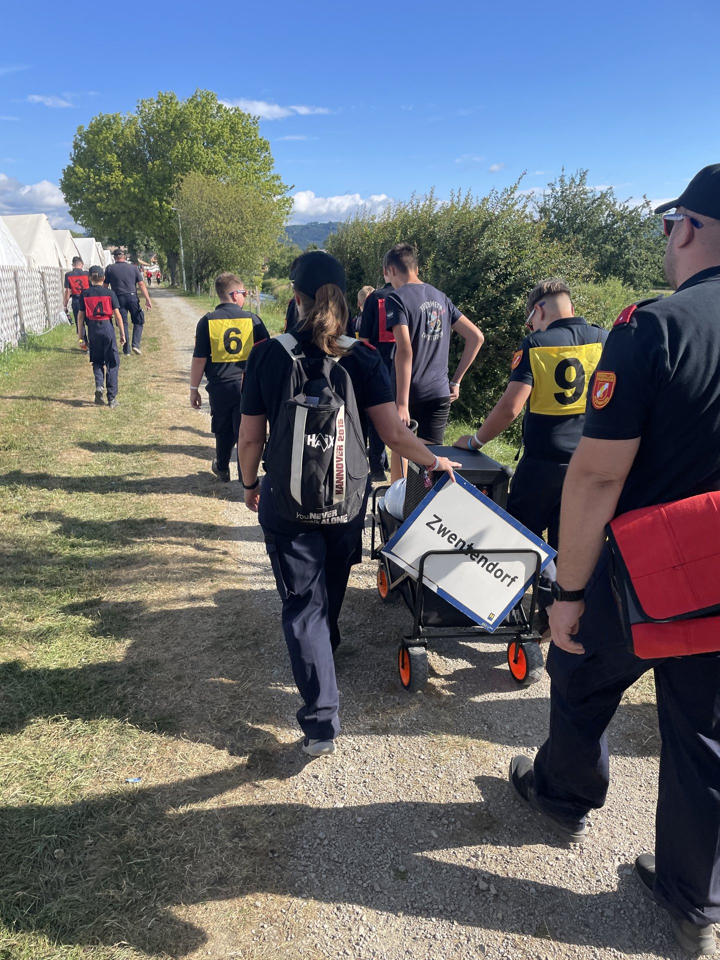 Am ersten Tag, direkt nach der Ankunft, machten wir uns sofort an den Zeltaufbau. Danach feuerten wir unseren Kameraden Tobias H. beim Wettbewerb um das Feuerwehrjugendbewerbsabzeichen an.