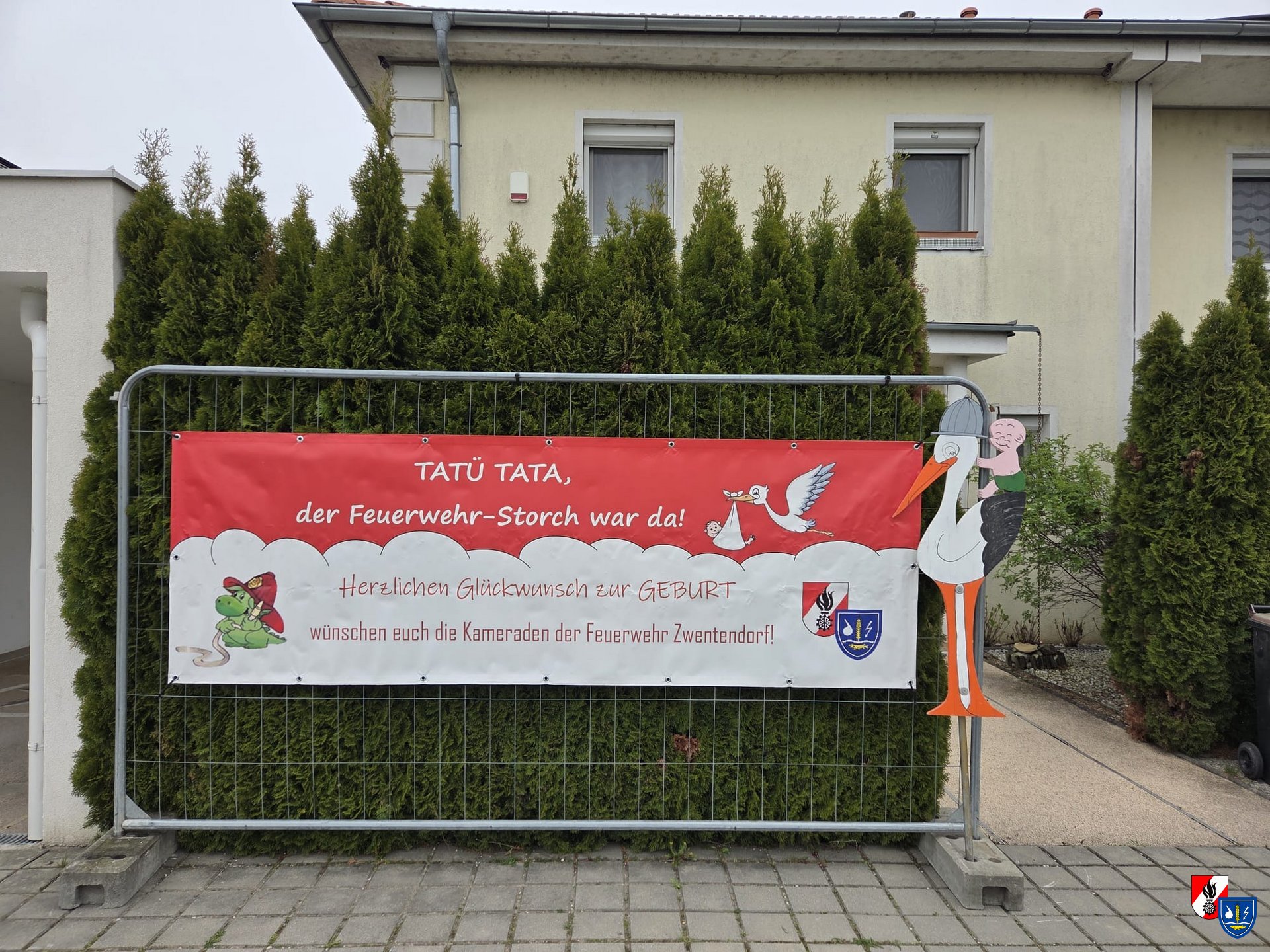 Florian erblickte am 08. April 2026 um 17:31 Uhr das Licht der Welt. Aus diesem freudigen Anlass stellten einige Kameraden den Feuerwehrstorch bei ihnen zuhause auf.